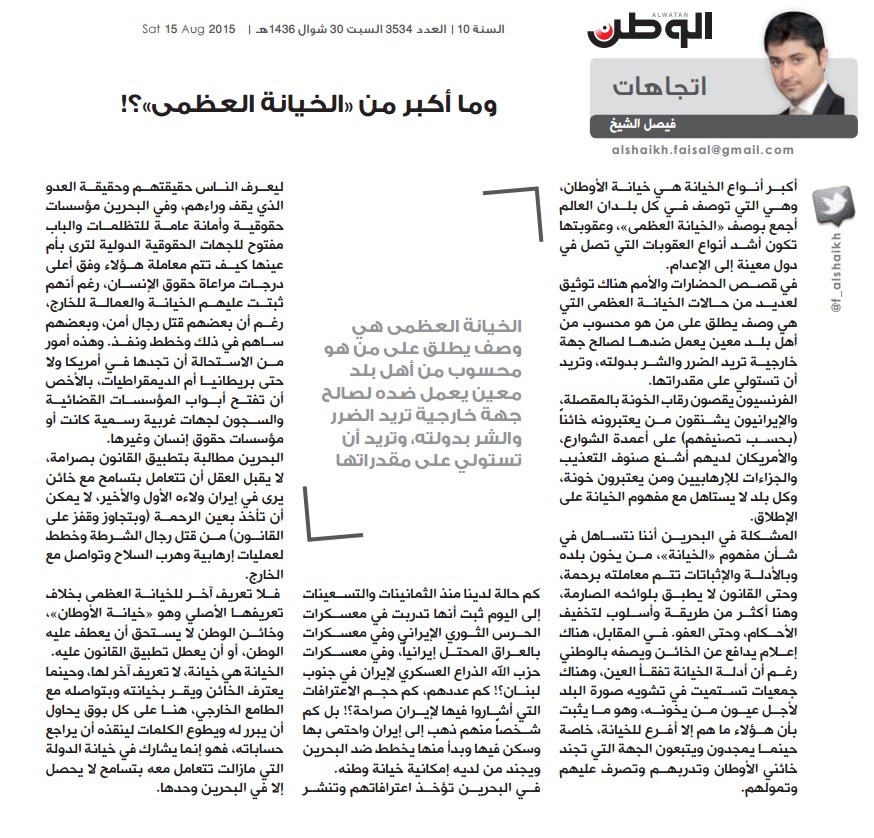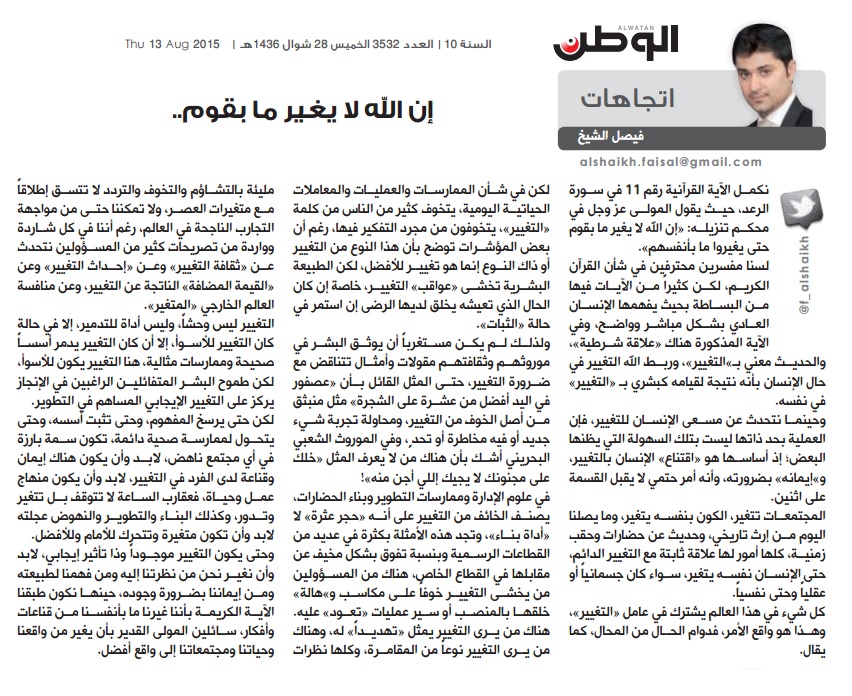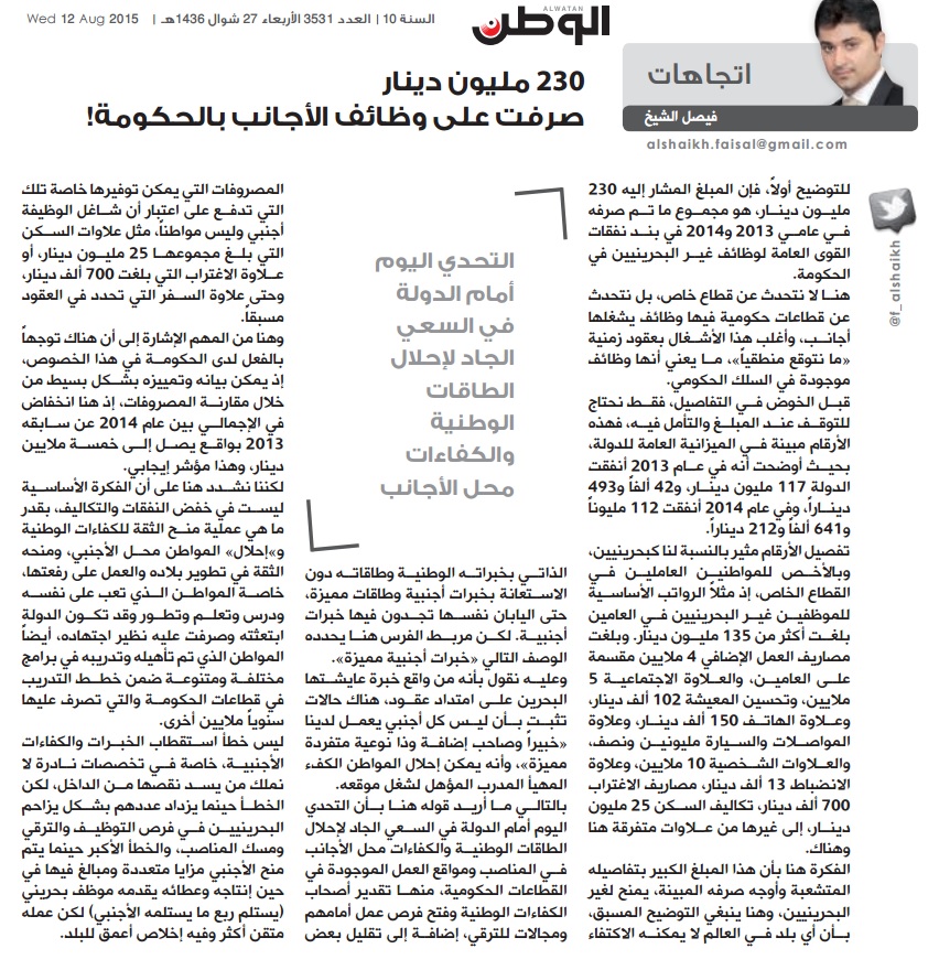 أسترجع حديثنا مع سمو رئيس الوزراء قبل سنوات عن هذا الموضوع، وأتذكر حرقته على خسارة أي كفاءة وطاقة بحرينية شابة، وأهمس في أذن سموه قائلاً: كيف لا يا صاحب السمو، وهناك من يحطم هذه الكفاءات؟!