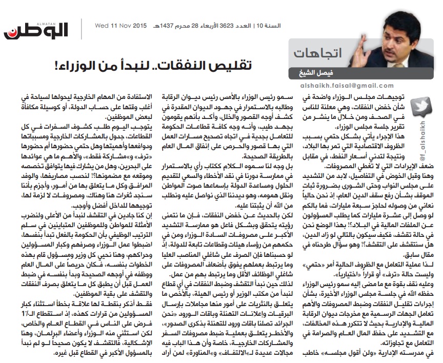وبعيداً عن ذلك كله، التبرير بأن عدم تمرير طلب رفع سقف الاقتراض، وأن إصرار النواب سيعطل أموراً حيوية للناس تدخل تحت خانة الخدمات، فإننا نقول بأن النجاعة تكمن في إيجاد حلول لا تجعل المواطن طرفاً في المعادلة ولا تؤثر على وضعه، وهنا نصر على أن الأمور التي ذكرت واعتبرها النواب وكأنها «تلويح» كنتيجة لرفضهم القبول برفع السقف، هذه الأمور التي تمس المواطن يمكن الاستعاضة عنها بوقف أنشطة أخرى ومشاريع لها ميزانيات كبيرة لا يرى لها المواطن أولوية -هذا إن أخذتم رأيه- كبعض الفعاليات الخارجية وبعض مشاريع الإنشاءات الكمالية مثل مجلس النواب الجديد وغيره وبعض المرافق الترفيهية وبعض مشاريع الوزارات.